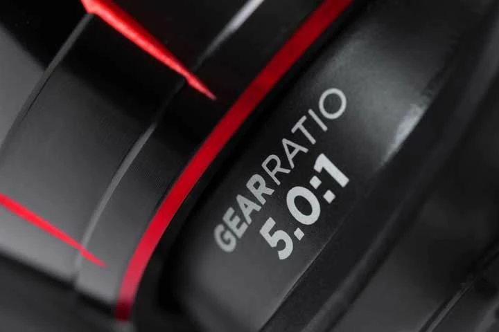 - Size: 520 β Gear Ratio: 5.01:1 β Weight: 337g – Bearings: 7 β Spool Capacity: 0.28mm / 150m β Retrieve: 0.95m / Turn